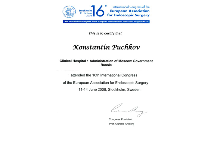 8) 2007 г. — в Европейският Център на нови хирургически технологии по въпроси на ендохирургия на задкоремно пространство (г.Еланкур, Франция)