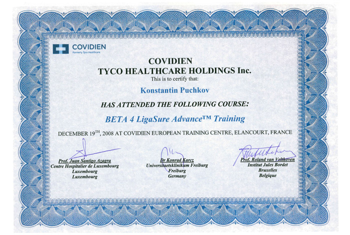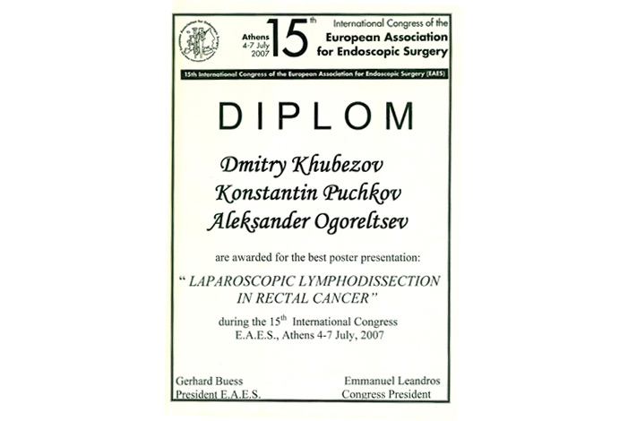 8) 2007 - במרכז אירופאי של טכנולוגיות כירורגיות חדשות בשאלות הקשורות לאנדוסורגיה של חלל הבטן (אלנקורט, צרפת)