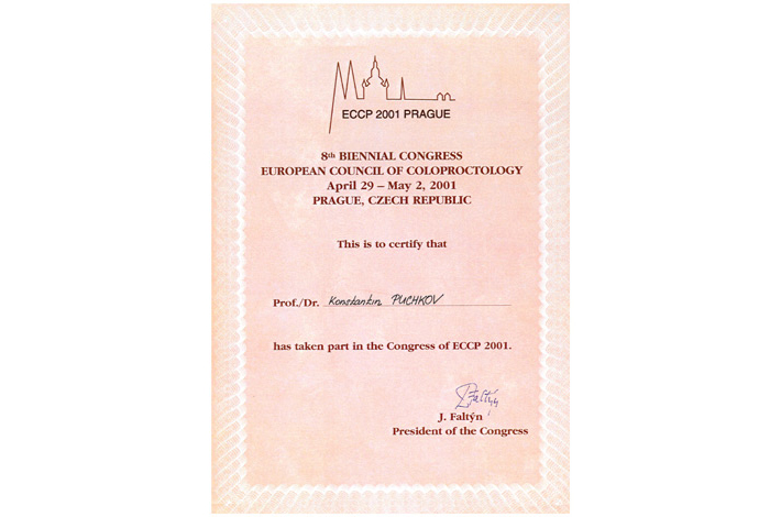 8) 8th Biennial Congress European Council of Coloproctology, 29 April - 2 May, Prague, Czech Republic, 2001.